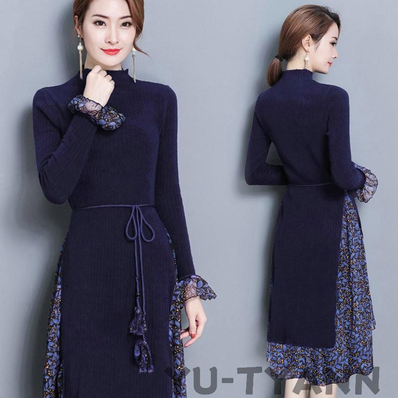ドッキング ワンピース 秋冬 レディース Aラインワンピース 長袖 きれいめ タイトワンピース 即納 レディース 韓国ファッション 直輸入通販 セクシーワンピース クールカジュアル 全品送料無料 Ukky Franky